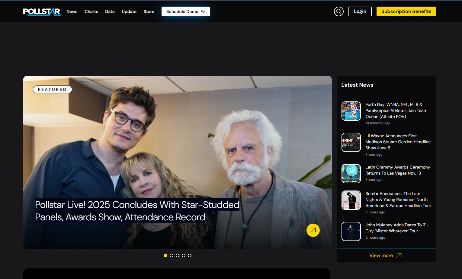 For news items on news.pollstar.com we refine article searches with a Pollstar News Search.